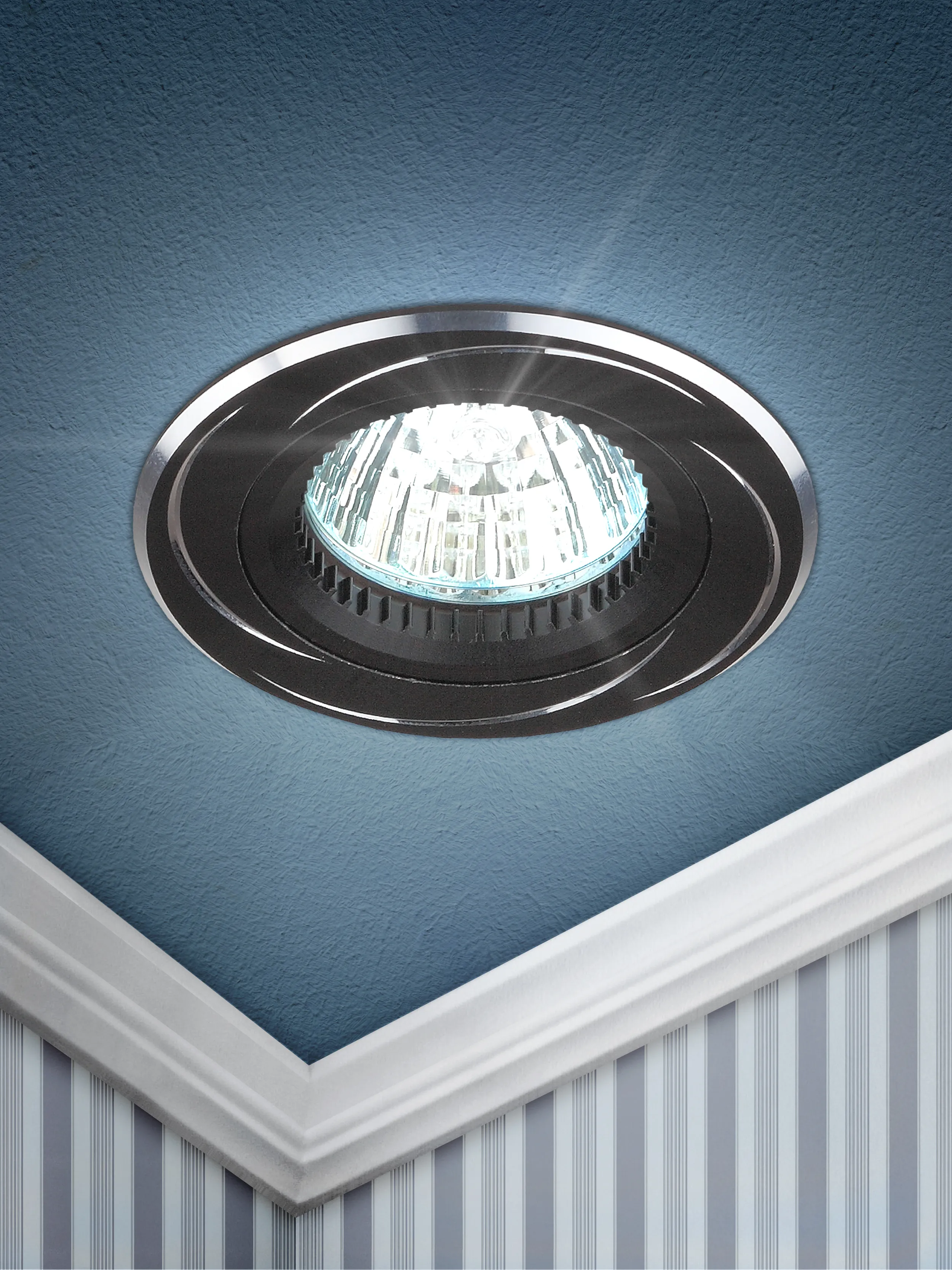 Светильник встраиваемый KL34 AL/BK/1, цвет светильника черный/хром, цоколь GU5.3 Лампа в комплект не входит. Для основного и акцентного освещения жилых и офисных помещений.