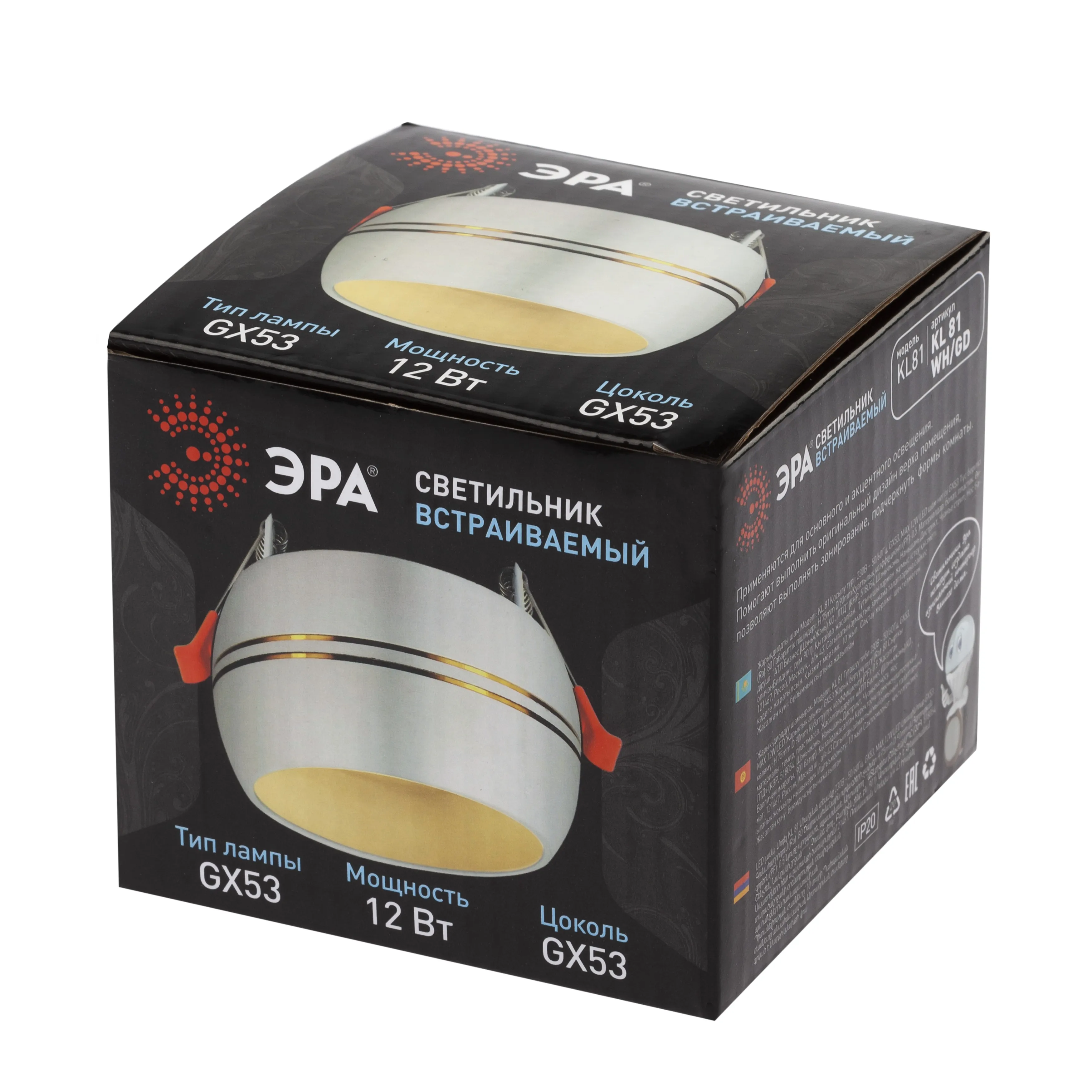 Отзывы о Светильник встраиваемый KL81 WH/GD алюминиевый GX53 белый/хром (40/960) ЭРА Б0049010 )