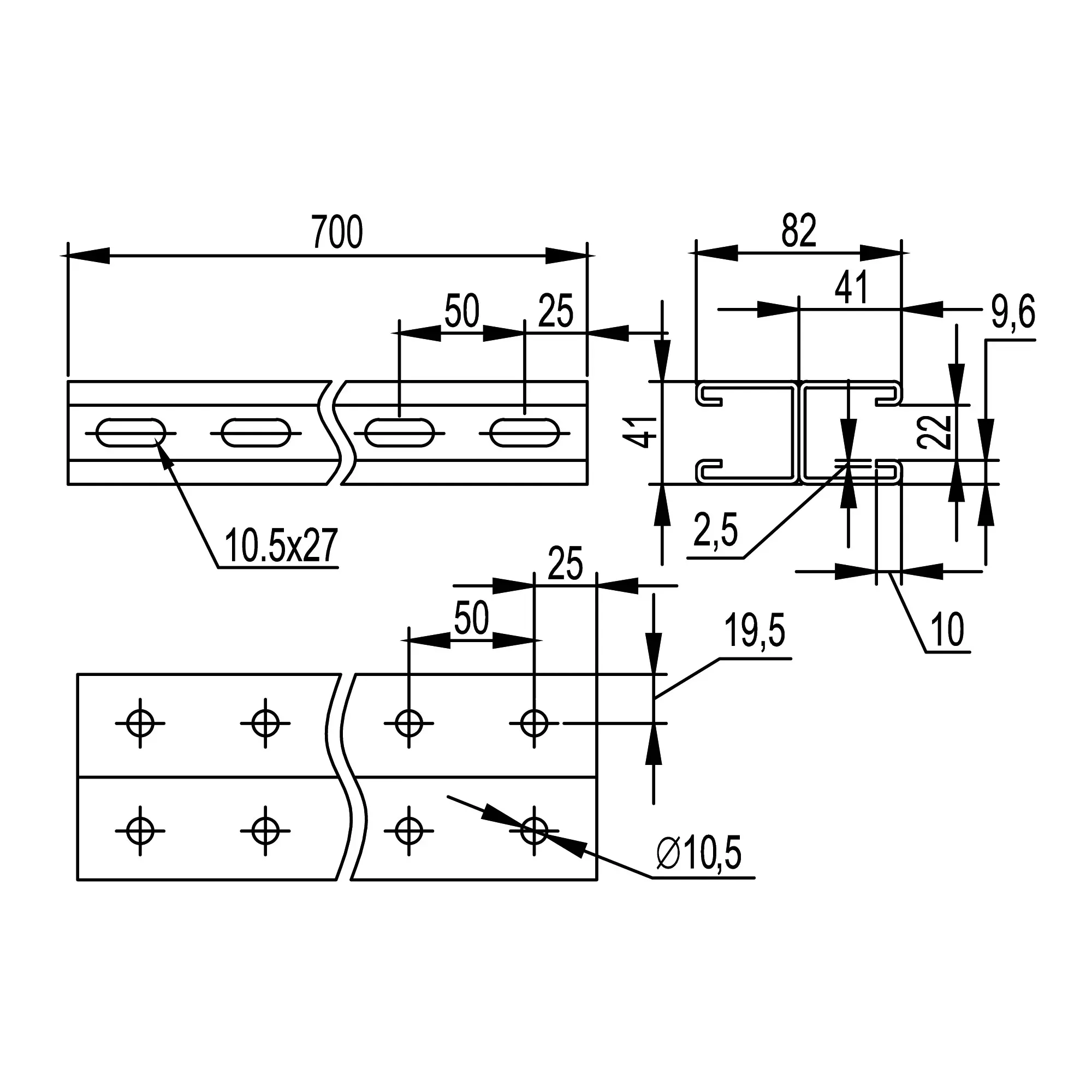 DKC / ДКС BPD4105 Двойной С-образный профиль 41х41, L500, толщ.2,5 мм