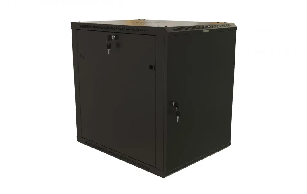 Hyperline twb-1268-sr-ral9004 шкаф настенный 19-дюймовый (19"), 12u, 650x600х800мм, металлическая передняя дверь с замком, две боковые панели, цвет черный (ral 9004) (разобранный) HYPERLINE TWB-1268-SR-RAL9004