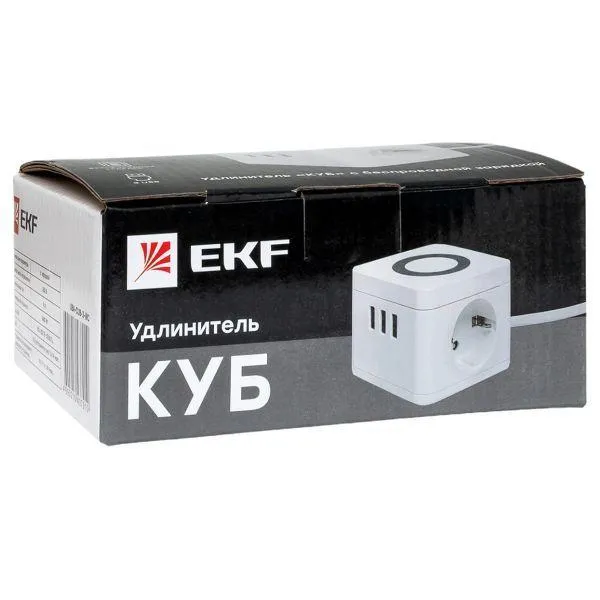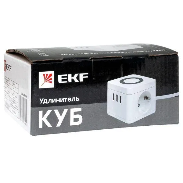 Отзывы о Удлинитель Куб 2 гнезда 3USB 2,4А+зарядное устройство 1,3 метра 1мм2 EKF UBA-CUB-3-WC )