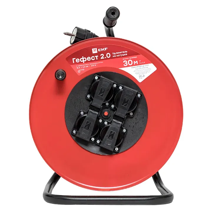 Отзывы о Удлинитель на катушке Гефест 2.0 4 гнезда 30м с заземлением и предохранителем КГ 3*2,5 16А/3,5кВ тIP44 PROxima EKF UKG02-16-R325-4-30-IP44 )