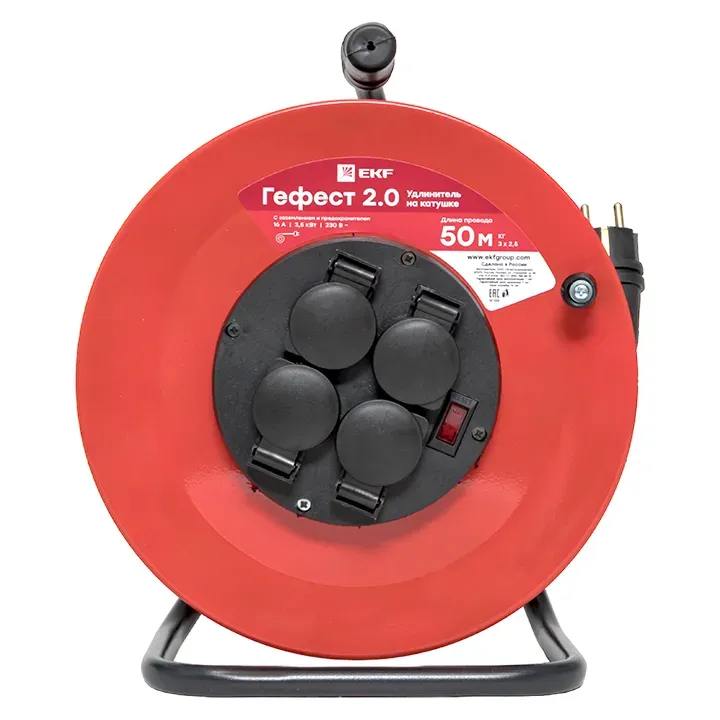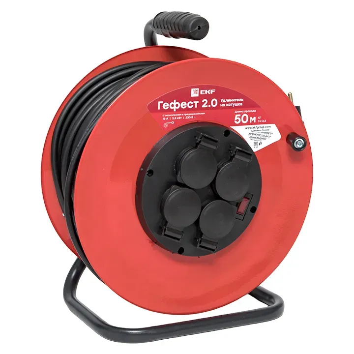 Отзывы о Удлинитель на катушке Гефест 2.0 4 гнезда 50м с заземлением и предохранителем КГ 3*2,5 16А/3,5кВ тIP44 PROxima EKF UKG02-16-R325-4-50-IP44 )