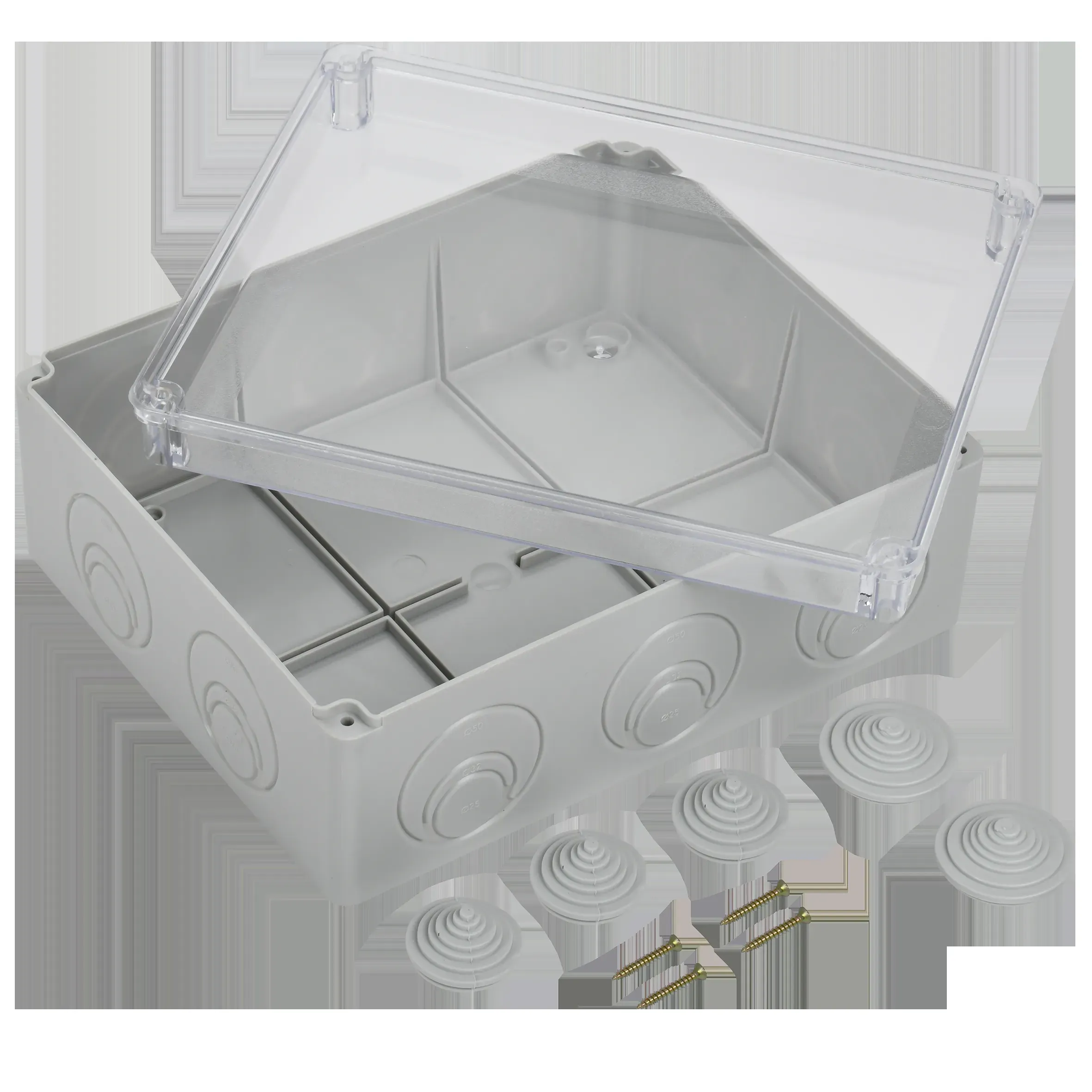 IEK UKO10-240-195-090-K51-44 Коробка распаячная КМ41275 для открытой проводки 240х195х90 мм IP44 (RAL7035, прозрачная крышка, кабельные вводы 5 шт)