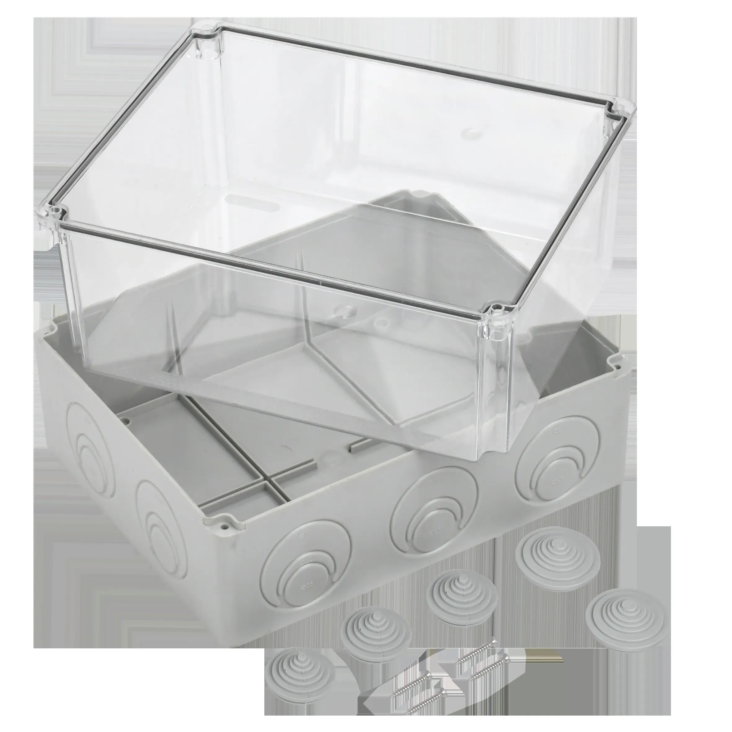IEK UKO10-240-195-165-K51-55 Коробка распаячная КМ41278 для открытой проводки 240х195х165 мм IP55 (RAL7035, прозрачная крышка, кабельные вводы 5 шт) 4шт