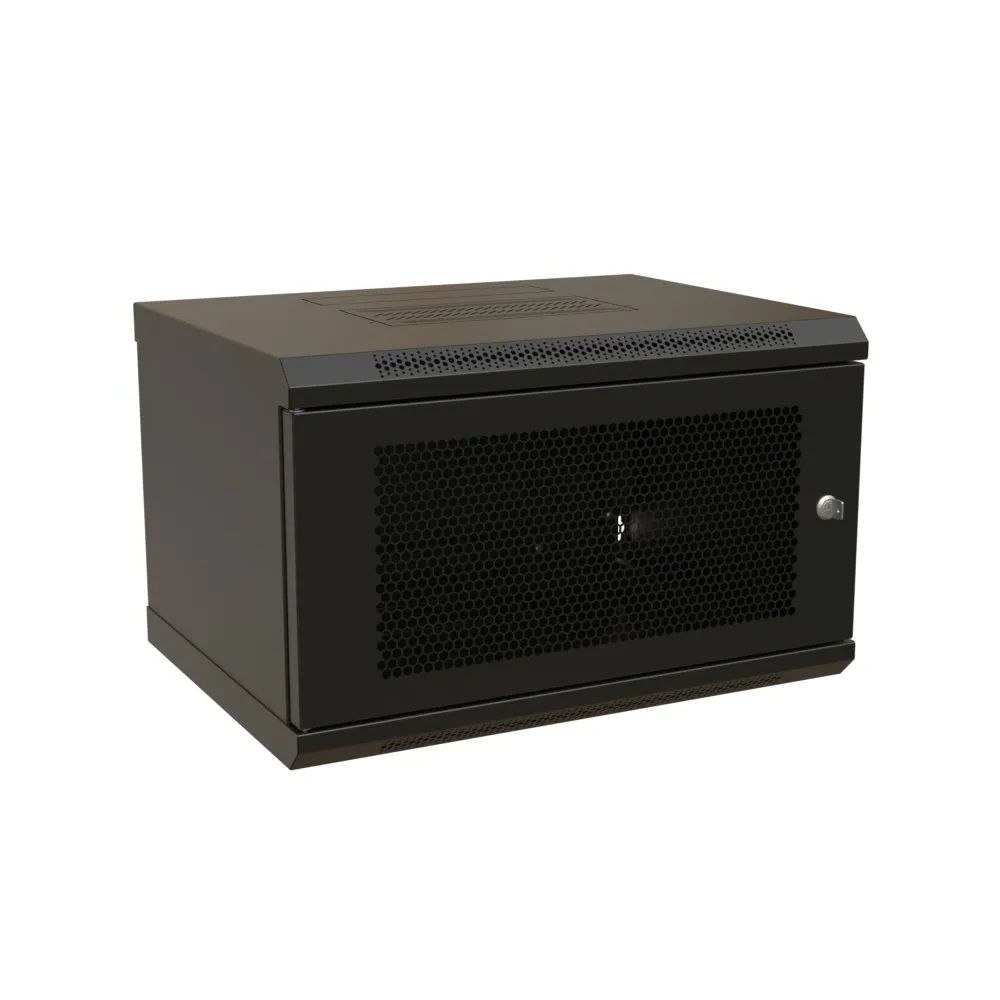 Wrline шкаф настенный 19-дюймовый (19"), 6u, 367x600х450мм, перфорированная металлическая дверь с замком, цвет черный (ral 9004) (разобранный) WRLINE WR-TW-0645-SD-RAL9004