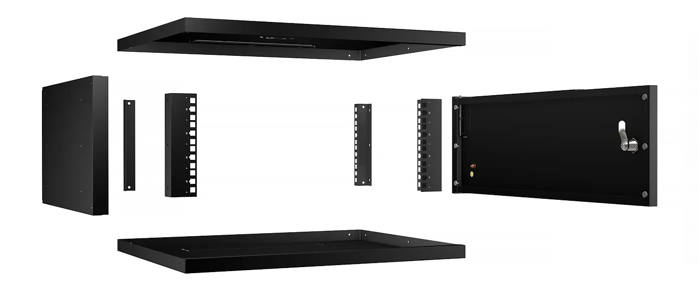 Cabeus WSC-05D-4U55/45m-BK Шкаф телекоммуникационный настенный 19" 4U, серия LIGHT разборный, дверь металл, цвет черный