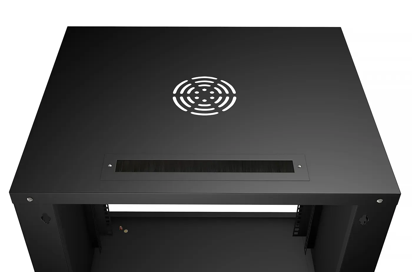 Крыша шкафа имеет перфорацию. В крышу можно установить вентилятор Cabeus XD12038A2 на 1 модуль. Крыша и основание шкафа имеют отверстия для ввода кабеля. Вертикальные направляющие не регулируются по глубине. Боковые стенки не съемные. Оборудование располагается на вертикальных направляющих. Перфорация направляющих соответствует стандарту DIN 41494-7. На направляющие устанавливаются любые устройства в стандарте 19”.