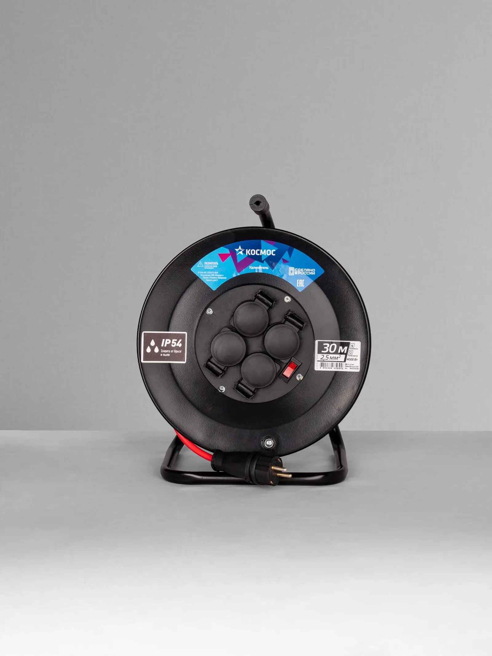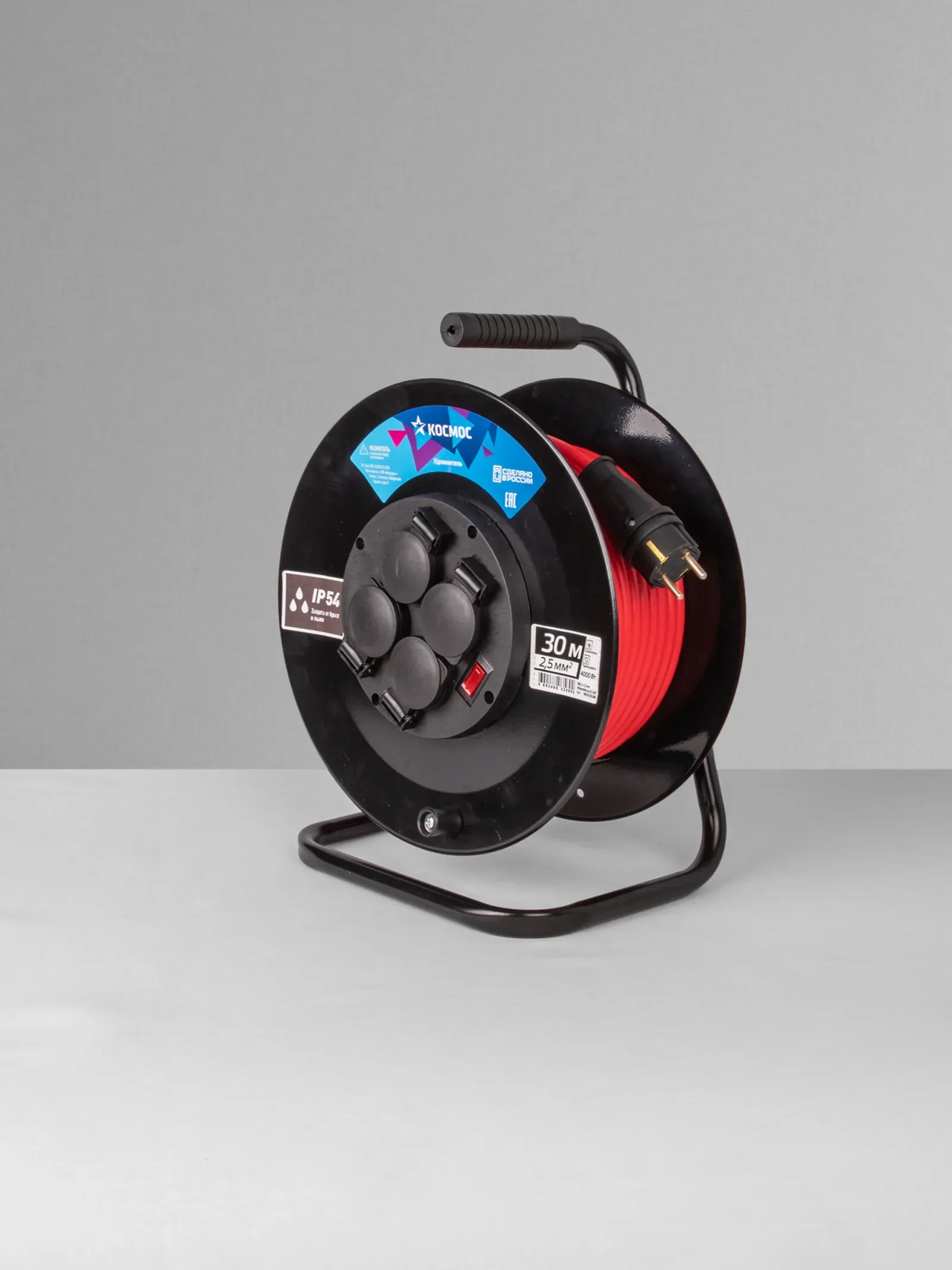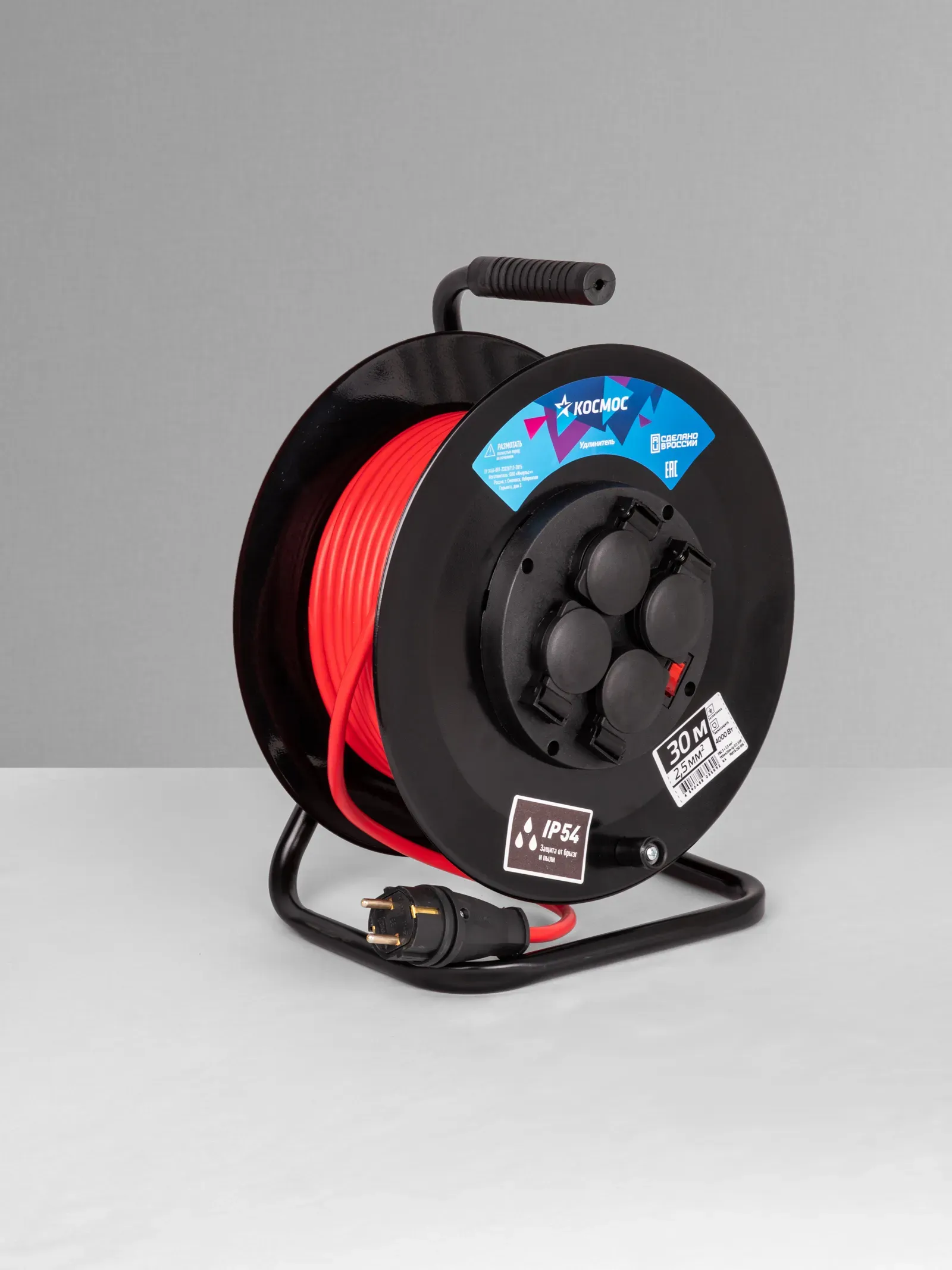 Отзывы о Удлинитель КОСМОС катушка 16А 4 гн ПВС 3*2,5 30м IP54 с заземлением КОСМОС YKKsm30m-4g-Z(2,5)IP )