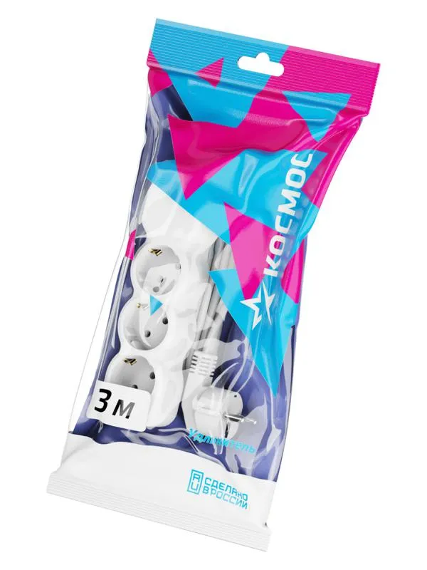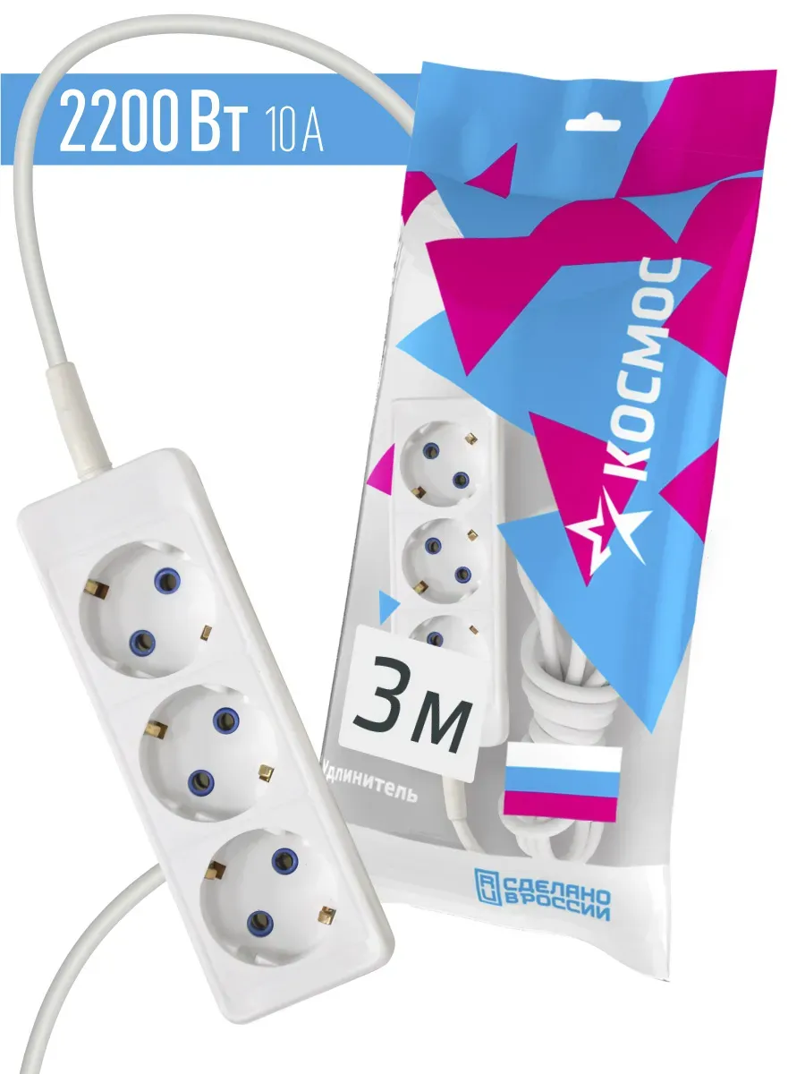Отзывы о Удлинитель КОСМОС 10А 3 гн ПВС 3*0,75 3м с заземл. КОСМОС YKsm3m-3g-Z(10A)P )