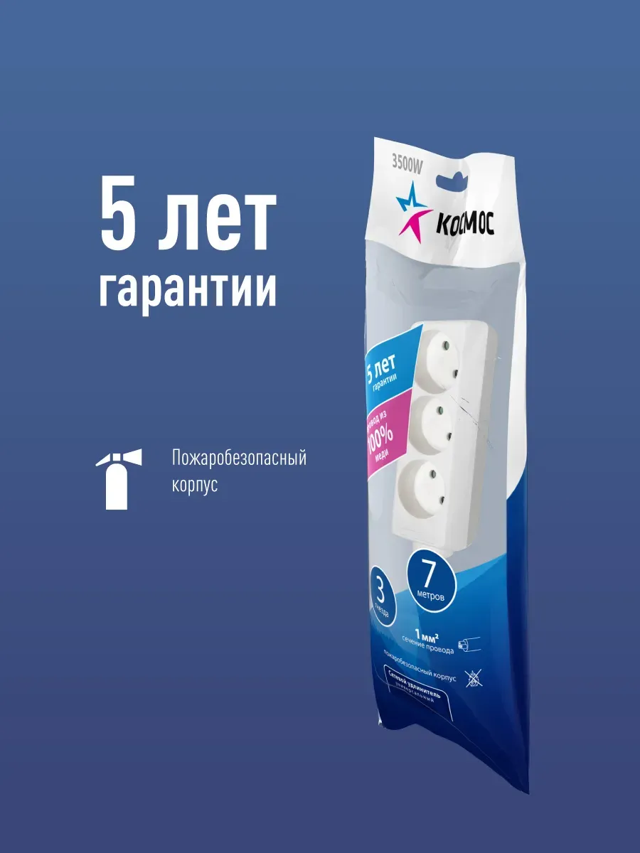 Отзывы о Удлинитель 7м, 3гн. ПВС 1мм2, КОСМОС КОСМОС YKsm7m-3g(K) )